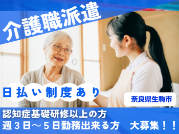 【急募】派遣/奈良県生駒市/デイサービスでの介護職員/W3~5日勤務出来る方大募集/job-95182